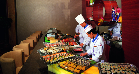 萬國料理西餐廳裝修時尚高雅,內(nèi)設(shè)鐵板燒餐區(qū)、壽司吧、鐵板燒貴賓房、法式貴賓房,是您請客、聚會、商談的理想之地。由從業(yè)超過廿年的西餐大師楊建國總廚主理,歐美餐點(diǎn)、法國私房菜、日本料理等一系列異國風(fēng)味令您如同置身于奇妙國度。
